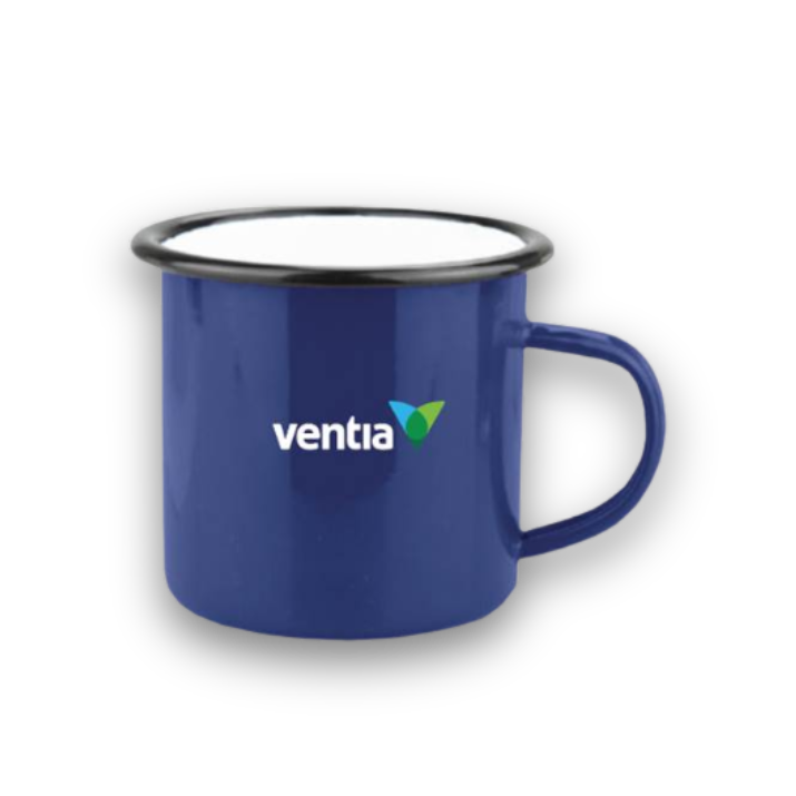 Durable 350ml Enamel Camper Mug with glossy colour outer white colour inner and black on top edge. It is made of stainless steel and stylish enamel. The perfect mug for your next camping adventure.